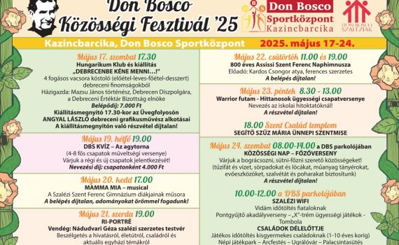 Ha május vége, akkor fesztivál a DBS-ben! Ez 2025-ben sem lesz másképp, itt az előzetes beharangozó a programsorozatról! DON BOSCO KÖZÖSSÉGI FESZTIVÁL 20252025.05.06. : Ajánló / Beharangozó, előzetes / Don Bosco Fesztivál by Szabó Zsolt