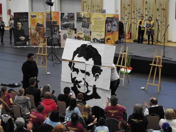 Majd a Szalézi Szent Ferenc Gimnázium fogadta műsorával a Rendfőnök atyát. Műsorukban megalkották Don Bosco arcképét, melyet néptánc és egy