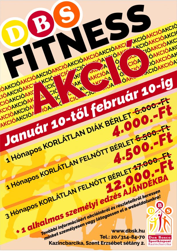 Év elején sokan tesznek fogadalmat ilyen-olyan vállalásokkal. A DBS szeretne segíteni minden kedves mozogni vágyó, vagy mozgás elkezdésével kacérkodó vendégén az elhatározásban és ajánljuk magunkat. Megéri betérni, családias konditermünkben elindulhat a sportolás, állandó mozgás, állóképesség, erőnlét fejlesztése útján. Szemezgessen bérlet akcióink közül: