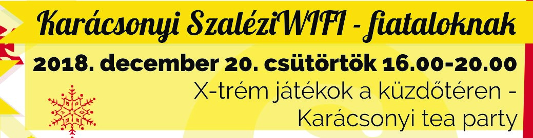 by Szabó Zsolt « All Események Ez az event elmúlt. Karácsonyi Szalézi WIFI 2018.12.20. | 16:00 - 20:00 Ingyenes Esemény Navigation « “Láttuk csillagát napkeleten…” – Sváb karácsony Karácsonyi Kakaó koncert » X-trém játékok a küzdőtéren és karácsonyi tea party a DBS-ben… + Google Naptár+ iCal Exportálás Részletek Dátum: 2018.12.20. Időpont: 16:00 - 20:00 Összeg: Ingyenes Esemény Categories: Szabadidős, Szórakozás