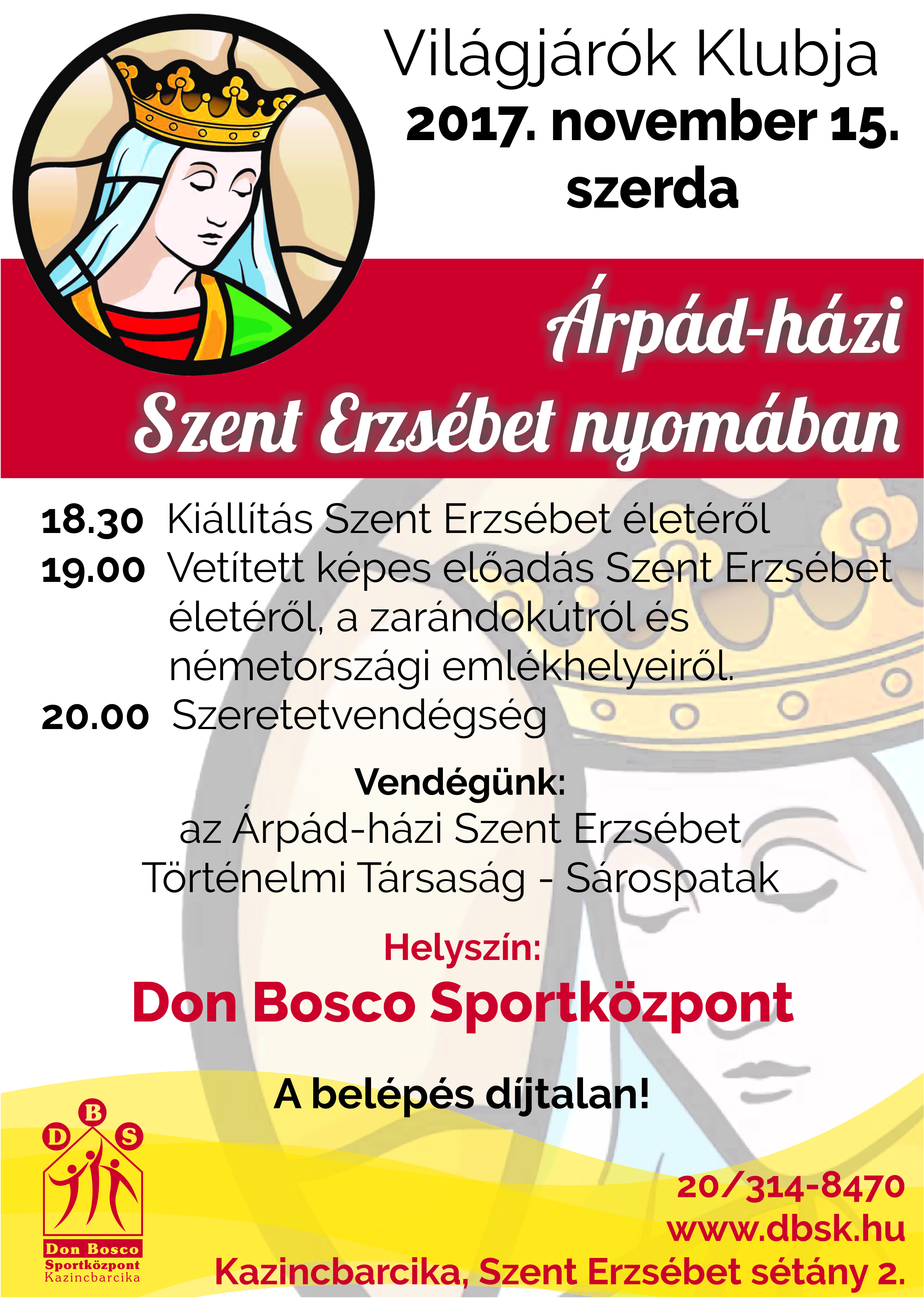 Vendégünk az Árpád-házi Szent Erzsébet Történelmi Társaság Sárospatakról. A belépés díjtalan.